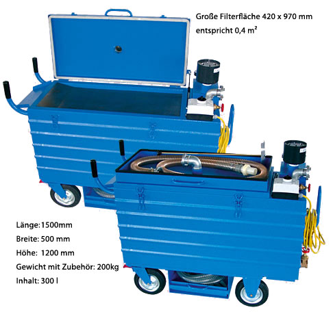 Absaugwagen Typ RC III (250 L) zur Ausfilterung von Spänen und Schlämmen aus Flüssigkeiten