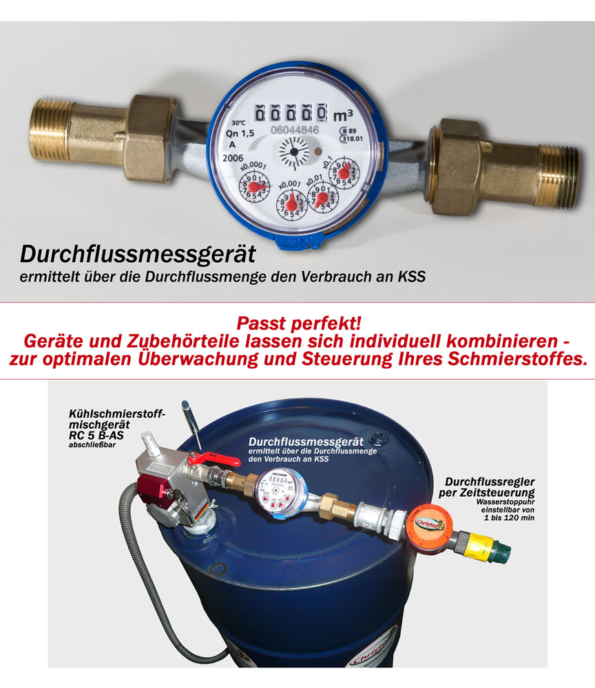 - Durchflussmenge stufenlos über das Ventil einstellbar