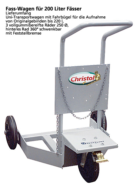 - Uni-Transportwagen mit Fahrbügel für die Aufnahme von Originalgebinden bis 220 l