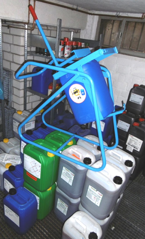 Optimal gepflegter, praktischer Nachfüllwagen zum Transportieren bzw. Nachfüllen von Kühlschmierstoffen, Wasser oder ähnlichen Flüssigkeiten.