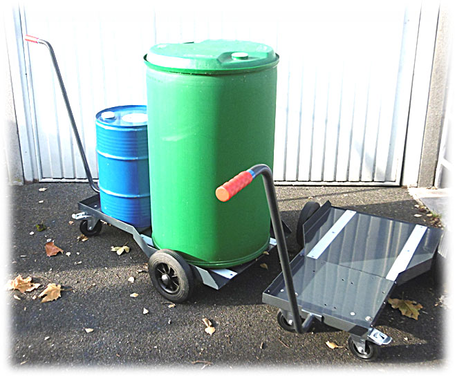 2 x Transportwagen für 200 Liter Fässer / 60 Liter Fässer oder Kanister